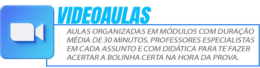 - Ao final de cada módulo há uma bateria de questões em vídeo em .PDF para que o aluno treino o que foi estudado.